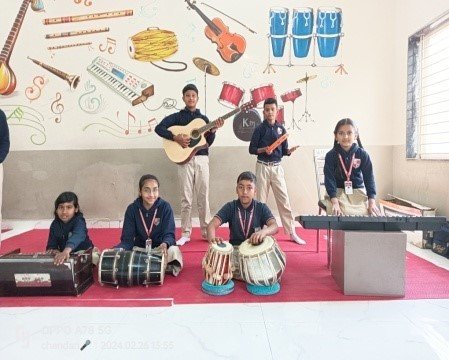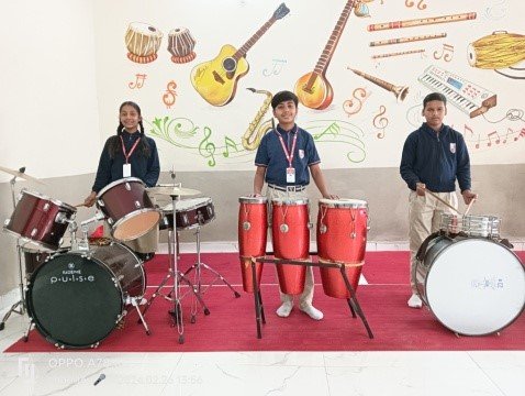 The school has separate rooms for Art & Craft, Music & Dance. The school also provides opportunity for students to learn the basics of dramatics. The Art room is designed in such a way that students derive aesthetic inspiration from the ambience itself. Ample space, light and all necessary accessories are provided so that students are given maximum scope for expression and improvement. The school has a music room specially designed for imparting music lessons (vocal and instrumental) to students. Various instruments (percussion, wind and string) are made available to students. Each class has a separate music period wherein the students are encouraged to experiment and choose from an array of fields available.